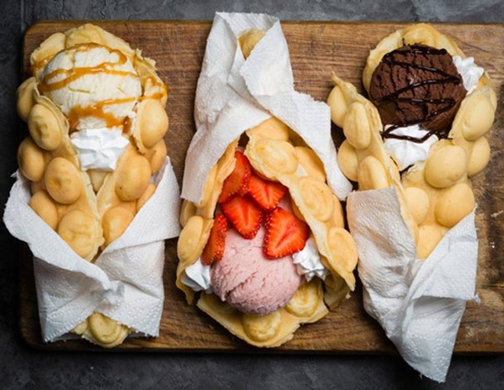 Bubble Waffeln sind auch unter dem Namen Hongkong Waffeln oder Egg Waffles bekannt.