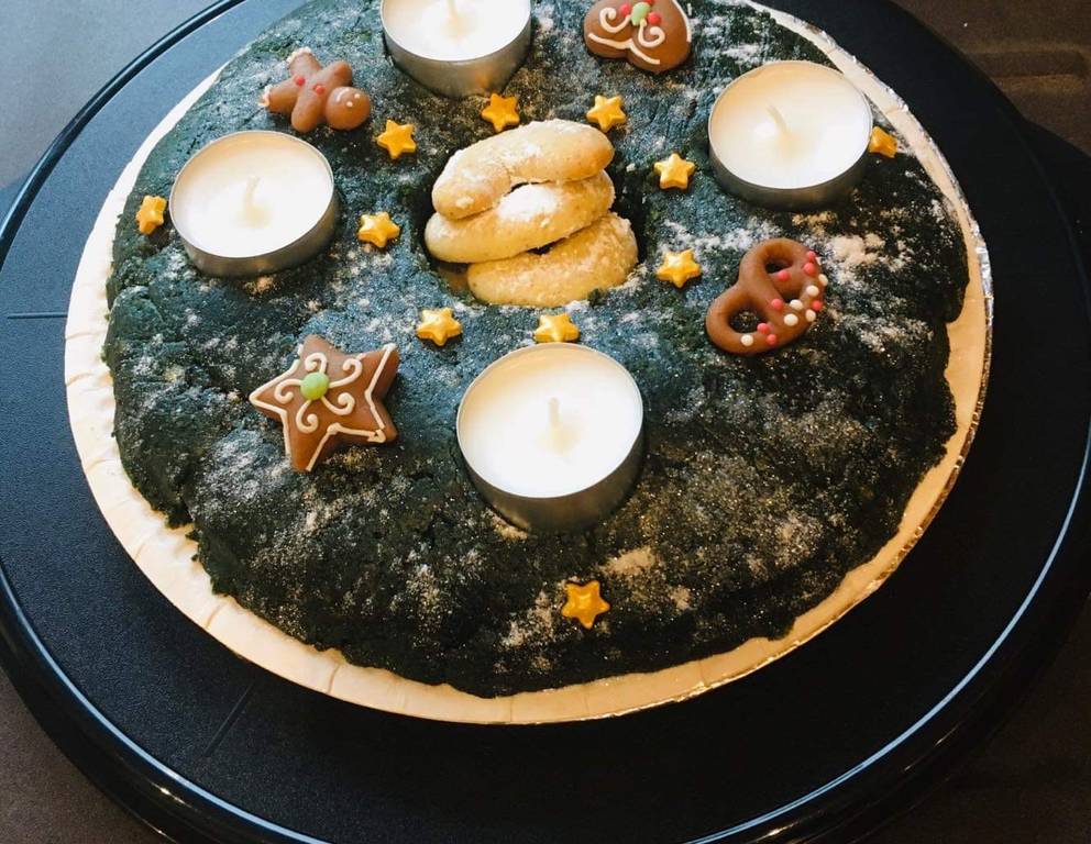 Wer die grüne Farbe nicht möchte, kann den Kuchen auch mit weißer Glasur überziehen und die grüne Farbe weglassen.