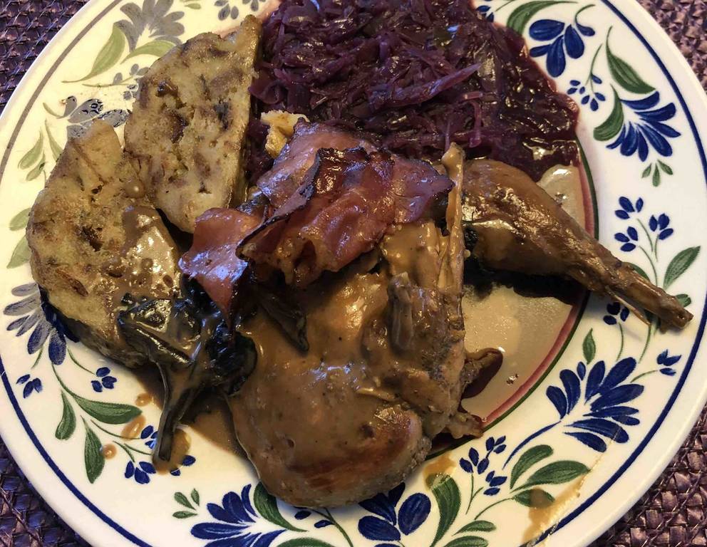 Dazu passen besonders gut noch Serviettenknödel als Beilage.