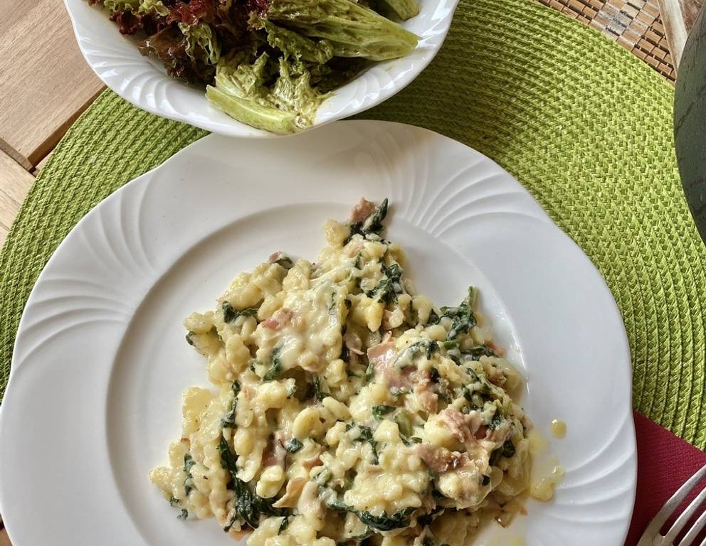 Die Spätzle sind als vegetarische Variante, ohne Schinken besonders köstlich.