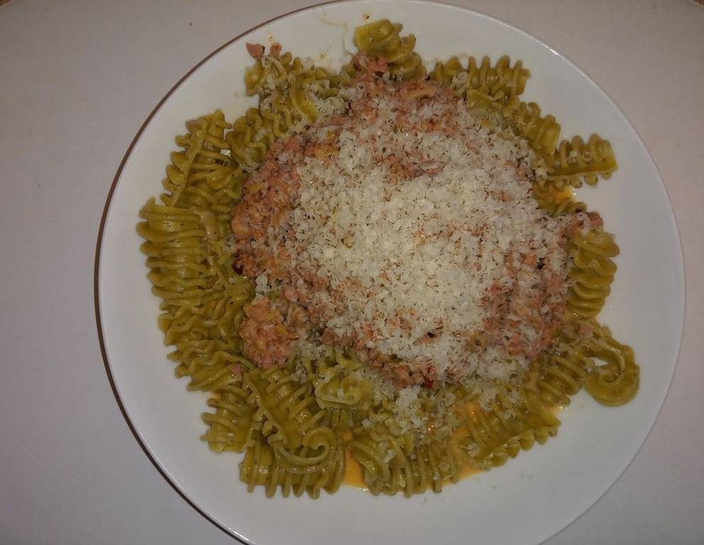 - In der Zwischenzeit beliebige Nudeln kochen, für alle Fälle etwas Nudelwasser zum Verdünnen auf die Seite geben.
