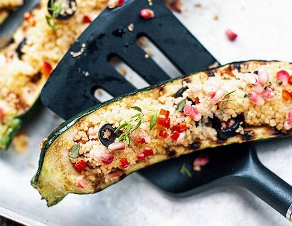 - Die Zucchini mit dem Couscous füllen und mit der Form wieder auf den Griller stellen.