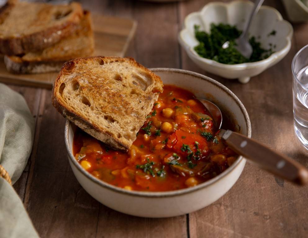 - Das Sauerteigbrot toasten und mit dem Eintopf servieren.