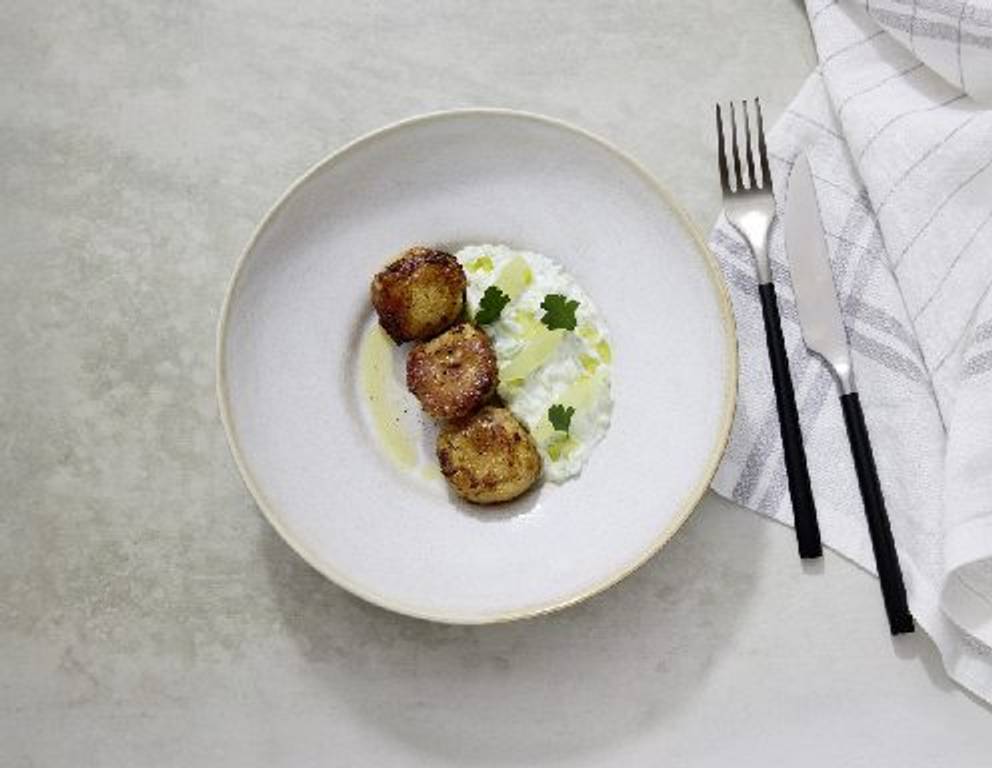 4. Die Cordon-Bleu Rolle aus dem Tiefkühler nehmen, ausrollen und in ca. 1,5-2cm große Taler schneiden. Salzen und in einer klassischen Panierstrasse (Mehl, Eier, Brösel) panieren. Die Cordon-Bleu Taler mit etwas neutralem Fett einpinseln und im Airfryer bei der „Airfryer-Funktion“ bei 180-190 Grad goldbraun heraus backen.