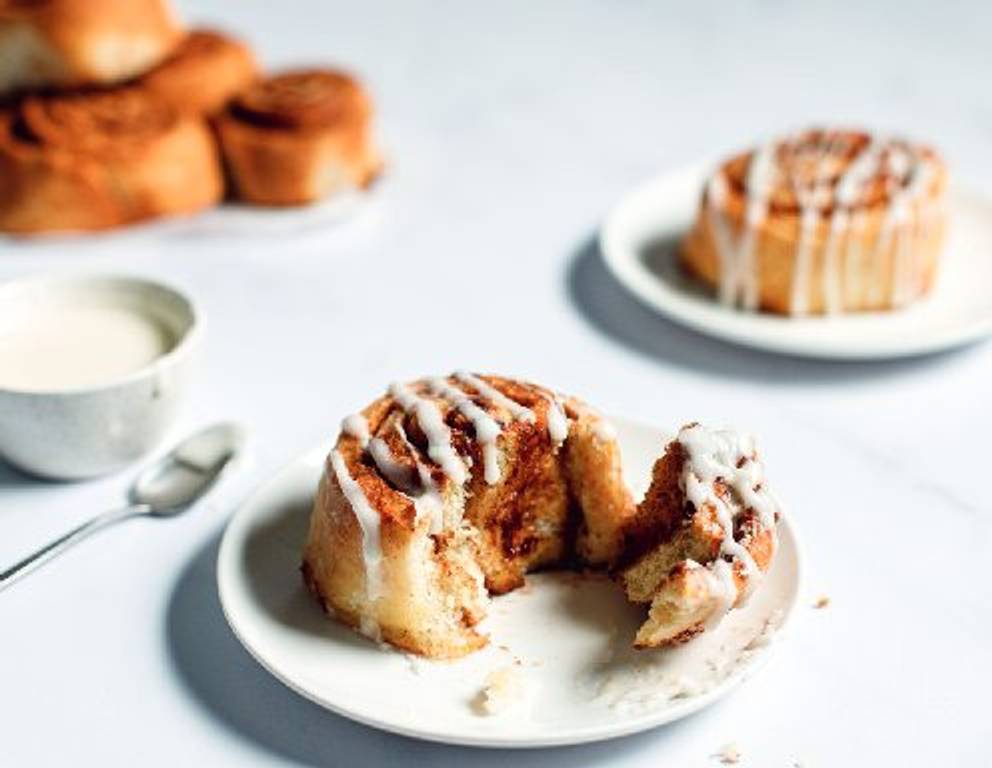 15. Die Glasur über die warmen Zimtschnecken träufeln und warm servieren.