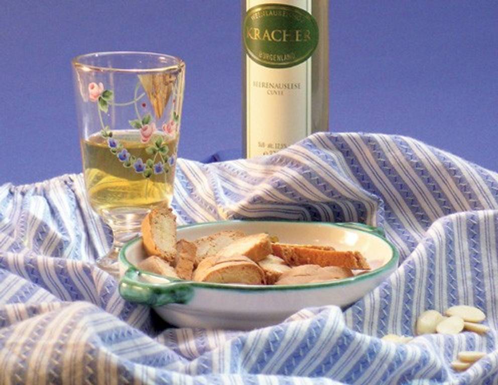 Aufgrund ihrer eher trockenen Konsistenz eignen sich die Kekse sehr gut zum Eintunken in Süßwein (wie z. B. einer Beerenauslese vom Weingut Alois Kracher, Illmitz, Neusiedler See).