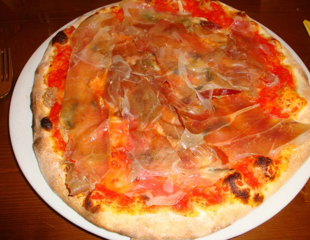 - Für die Pizza mit Prosciutto und dreierlei Käse den Pizzateig laut Grundrezept zubereiten. Teigkugeln auf die gewünschte Größe hin dünn ausrollen und auf ein mit Backpapier ausgelegtes Backblech legen. Teigrand zwischen Daumen und Zeigefinger wulstartig etwas hochdrücken.
