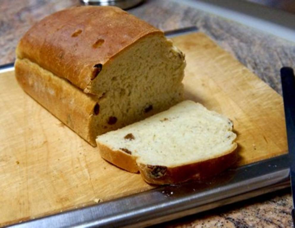 - Der Teig soll weich und faltbar werden. Falls der Teig zu klebrig bzw. zu trocken und steif ist, Mehl bzw. Wasser zufügen. In den letzten 2 Minuten des Knetens die Rosinen einstreuen. Eventuell am Ende den Teig noch mit den Händen durchkneten, um die Rosinen gleichmäßig im Teig zu verteilen.