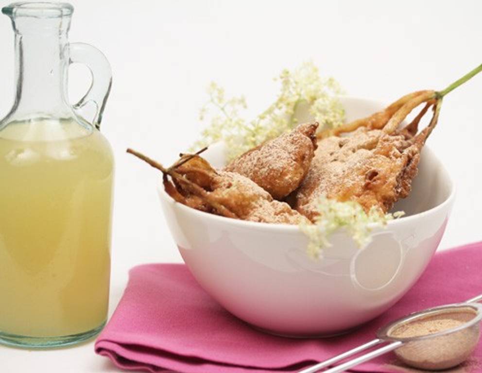 Dieses Gericht lässt sich aus saisonalen Gründen nur zur Zeit der Hollerblüte im Juni herstellen. Der beschriebene Mostteig eignet sich jedoch auch hervorragend für gebackene Birnenspalten oder anderes gebackenes Obst.