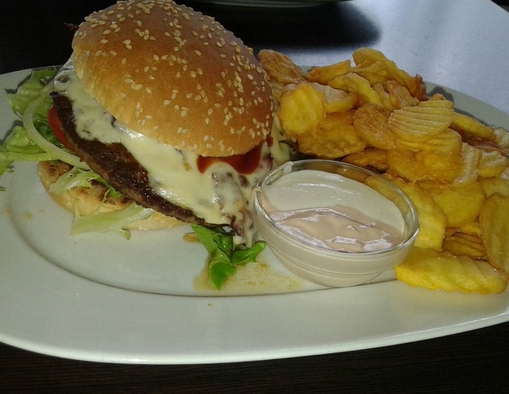 - Anschließend muss es rasch gehen: die untere Brötchenhälfte mit Senf bestreichen, Salatblatt darauf, Hamburgersauce, Gurkenscheiben, Tomatenscheiben bzw. Mayonnaise, dann die Fleischlaibchen mit Zwiebeln und Käse, dann der Spezial-Ketschup und den Deckel darauf.