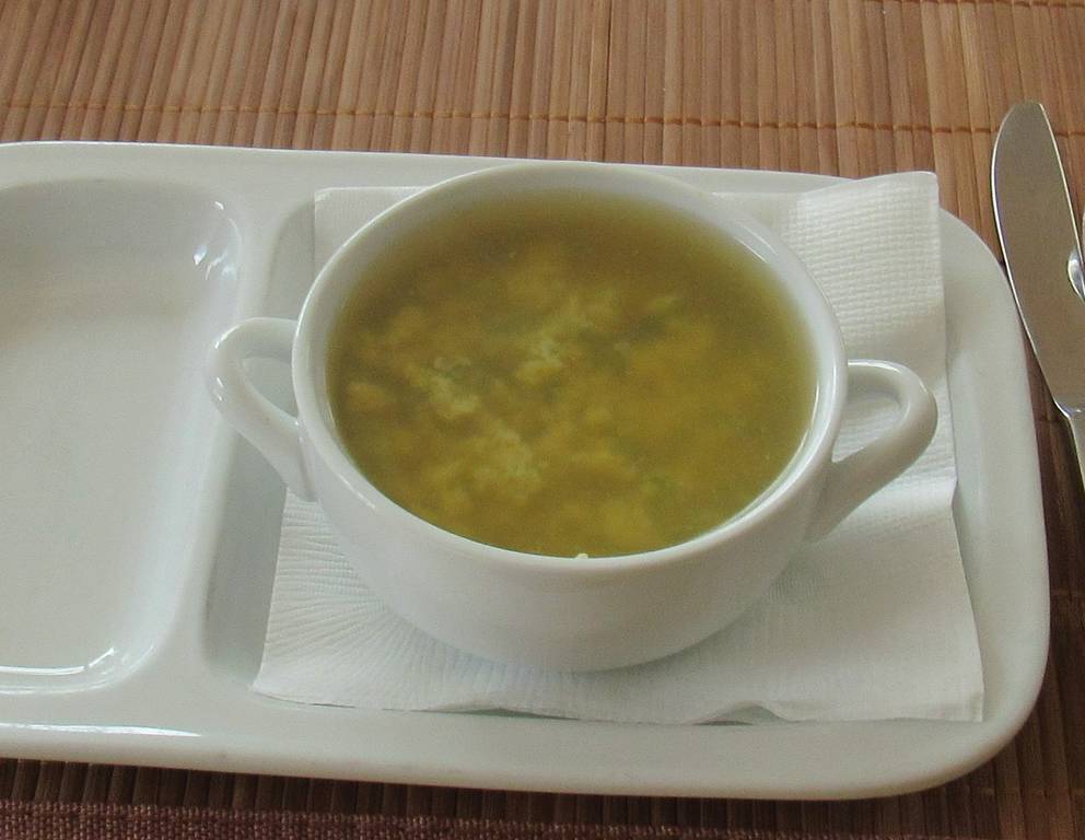 - Restliche Hühnersuppe aufkochen lassen und die Eimischung unter ständigem Rühren in die klare Suppe gießen, sodass feine Eier- und Käsefäden entstehen.