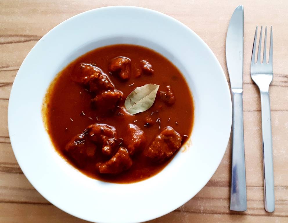 - Das Gulaschfleisch im heißen Öl anbraten.