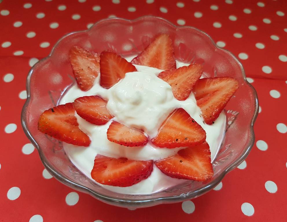 - Erdbeere, in Würfel geschnitten Erdbeeren, Zucker und wenig Pfeffer verquirlen, ca 10 Min. ziehen Rahm steif, aber nicht zu steif aufschlagen Magerquark mit Zucker unter den Rahm heben Mit Orangenblüten-Essenz leicht parfümieren. Mit den Erdbeeren anrichten