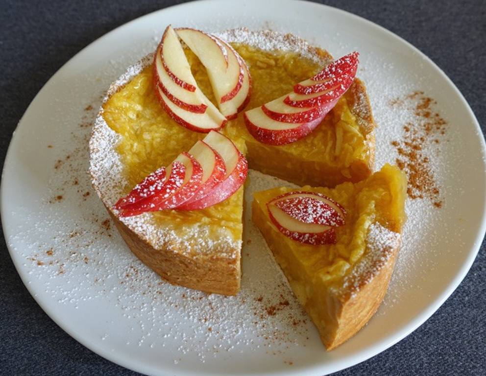Man kann die Apfeltorte auch ohne Schlagobers machen, dann ist sie etwas leichter.