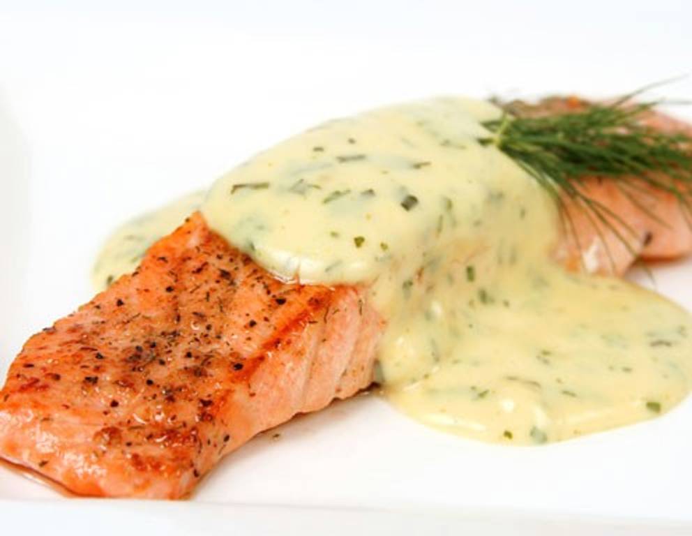 - Mit halbierten Cherrytomaten und Dillsauce (Dill, Salz, Sauerrahm) servieren.