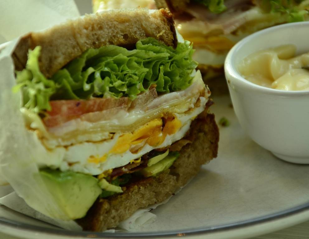 - Für das Clubsandwich die Mayonnaise (am besten selbstgemacht) mit dem in feine Streifchen geschnittenen Häuptelsalat durchrühren. Gegebenenfalls mit ein klein bisschen Worchestersauce, Pfeffer & Salz nachwürzen. Den Speck knusprig in einer Bratpfanne rösten. Die 3 Toastscheiben toasten und je mit der Blattsalat- Majo bestreichen; ein klein bisschen Mayo übrig. Auf die erste Scheibe den Schinken legen und mit den Eierscheiben belegen.