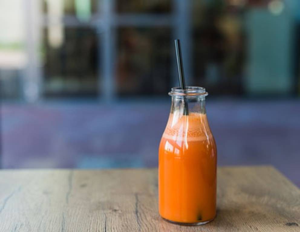 Falls Sie keinen Entsafter besitzen, können Sie auch fertigen Karottensaft mit Wassermelone fein pürieren.