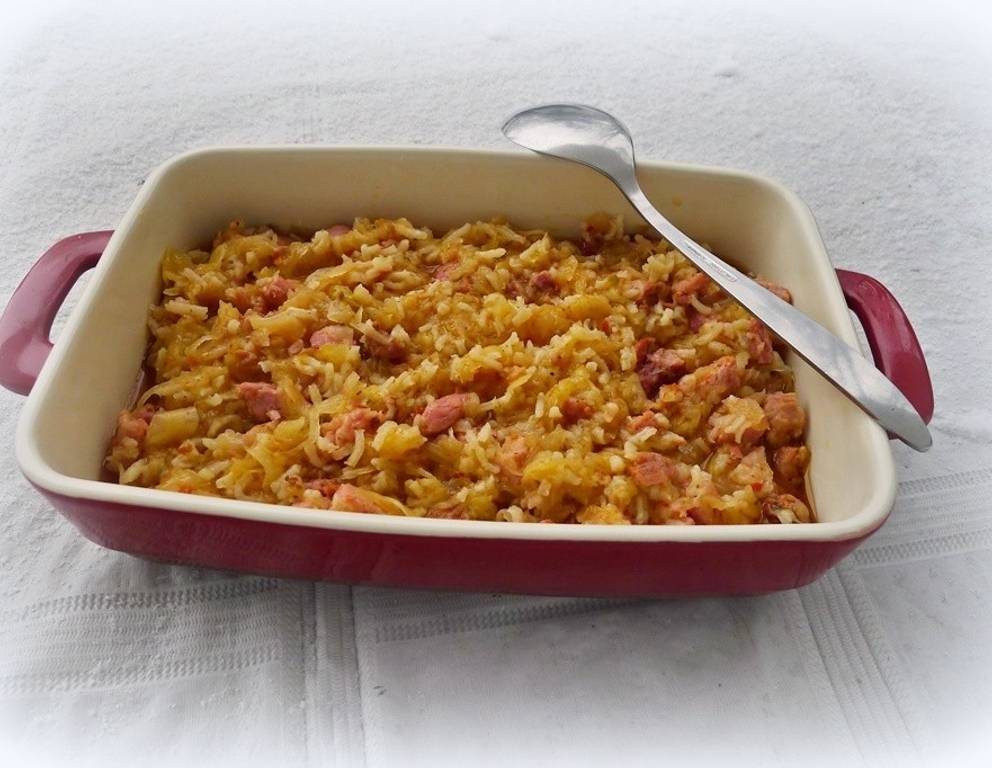 Der Sauerkraut-Reisauflauf kann auch mit anderen Fleischsorten zubereitet werden.