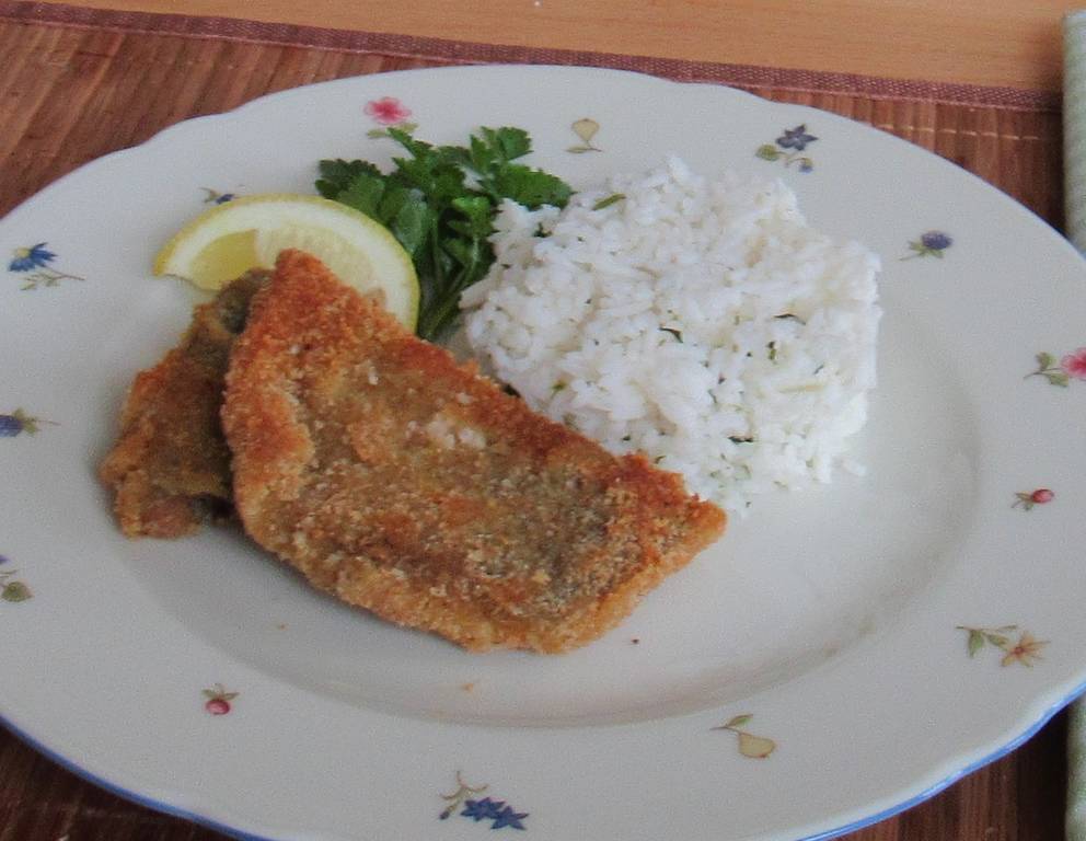 - Die Eier in einem tiefen Teller mit Salz und Pfeffer würzen und gut verrühren. Das Semmelbrösel in einen tiefen Teller geben. Die Karpfenstücke durch die Eier ziehen, mit dem Semmelbrösel von allen Seiten panieren. Auf einem Brett für 30-40 Minuten zur Seite stellen, damit sich die Panier etwas festigt.