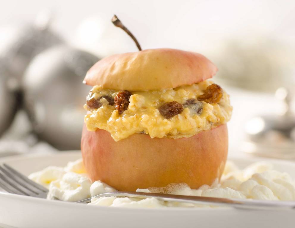 - Diese Masse in den ausgehöhlten Apfel einfüllenund den Bratapfel mit Topfenfüllung im auf 180° C vorgeheizten Backrohr ca. 40 Minuten braten. Wer mag kann vor dem Servieren noch frisch geschlagenes Schlagobers aufspritzen und mit einigen Rumrosinen verzieren.