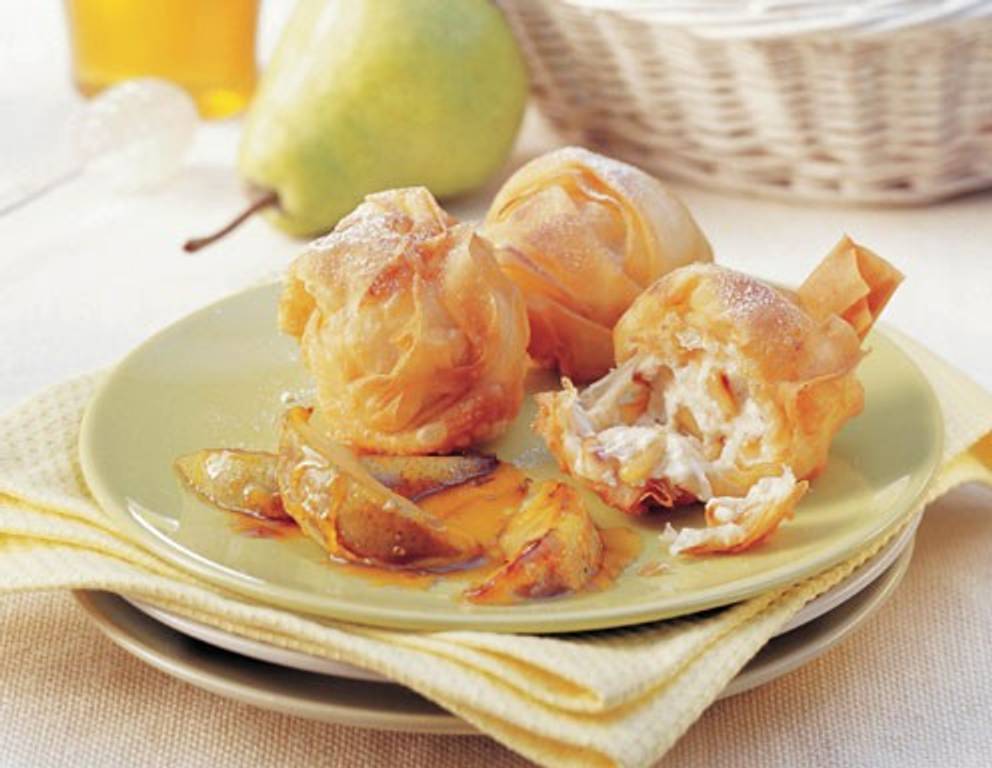 Die Ziegelbällchen schmecken besonders fruchtig mit karamellisierten Birnen. Dafür 2 reife Birnen in Spalten schneiden, Kerngehäuse entfernen und in 4 EL karamellisiertem Zucker in einer Pfanne kurz schwenken.
