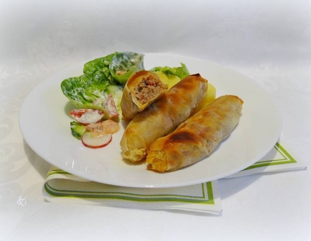 Achtung! Bei zu starker Hitze wird der Teig nicht knusprig! Sie können die Röllchen selbstverständlich auch im vorgeheizten Backrohr bei 180° C ca. 10 Minuten backen.