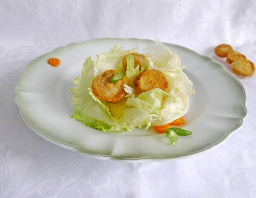 Der Salat kann nach eigenem Geschmack zubereitet werden. Auch Krautsalat passt hervorragend dazu.