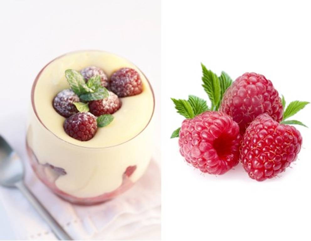 - Eine Ringform mit 10 cm Durchmesser auf einen Teller stellen. Die Biskottenstücke als Boden darin auflegen. Die Hälfte der Creme darauf verstreichen und einige Himbeeren als Dekoration darauf legen.