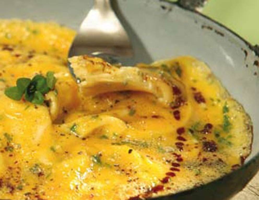 Serviervorschlag: Kernöleierspeis in der Pfanne belassen, nochmals darüber pfeffern und mit Schwarzbrot servieren.