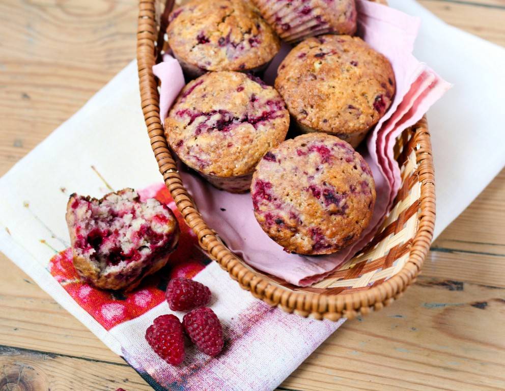 Bereiten Sie die Muffins anstelle der Himbeeren mit Erdbeeren oder Heidelbeeren zu.