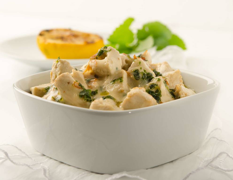 Servieren Sie Hühnergeschnetzeltes in Weißweinsauce mit selbstgemachten Tagliatelle. Wer es gerne farbenfroher möchte, gibt 5 Minuten vor Garende eine Handvoll Erbsen zu dem Geschnetzelten (bereits aufgetaut oder frisch).