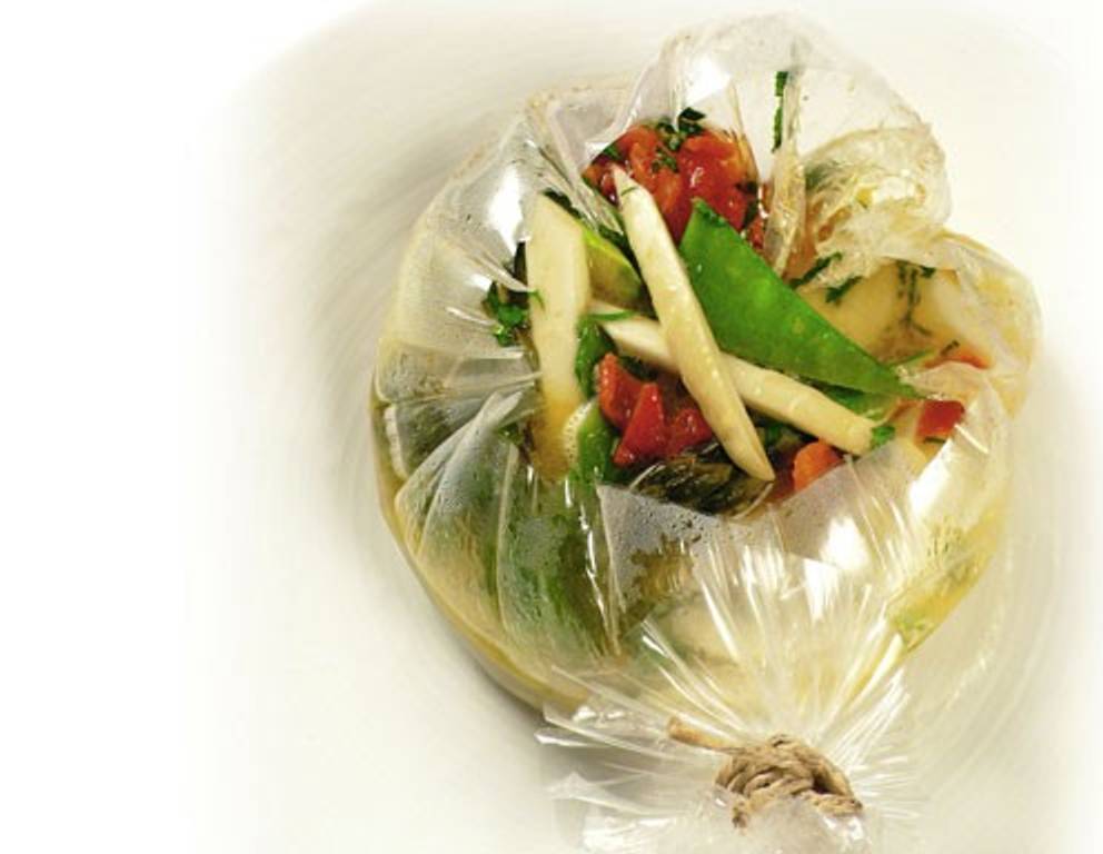 - Den Spargel schälen, holzige Teile entfernen. Nun je 6 Stangen Spargel auf ein Stück Alu- oder Bratfolie legen. Würzen, mit Kräutern bestreuen und mit flüssiger Butter begießen. Erdäpfel ebenfalls schälen und Kugerln ausstechen. Gemeinsam mit dem Spargel in Folie einpacken und die Folie gut verschließen. Im vorgeheizten Backrohr bei 190 °C ca. 35–45 Minuten garen. Danach noch etwas rasten lassen und erst kurz vor dem Servieren öffnen.