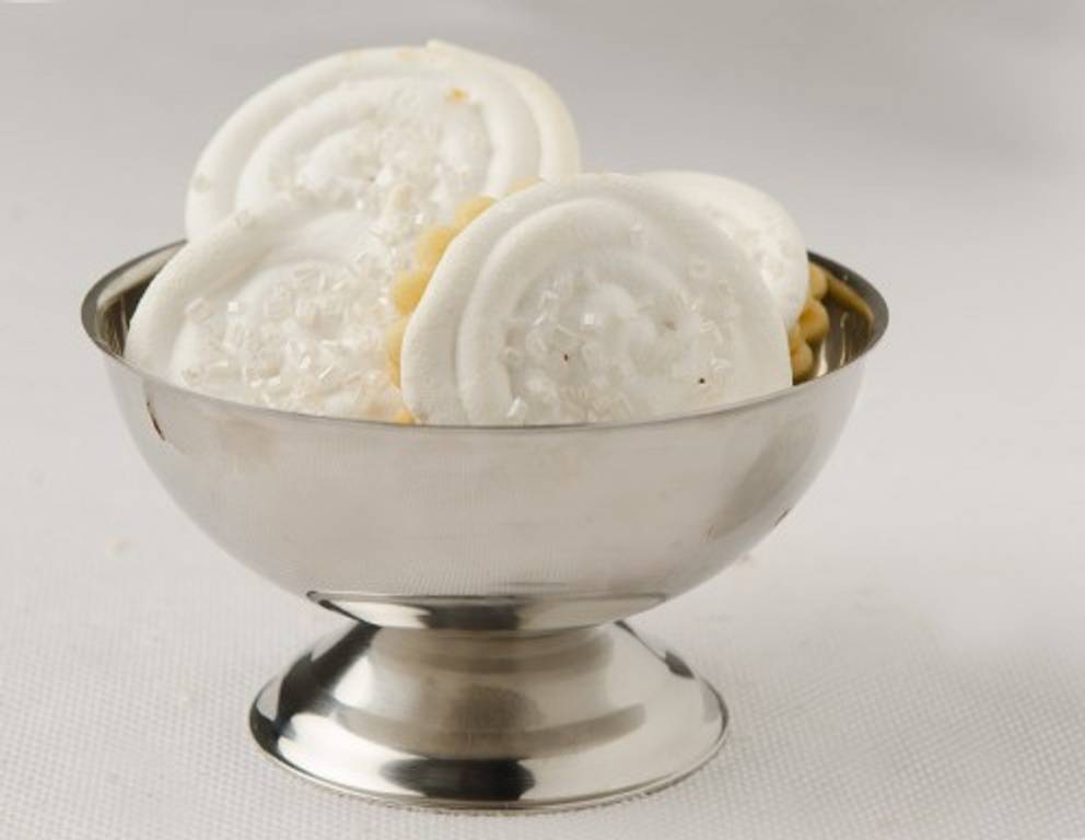 - Den Schnee in einen Spritzbeutel mit runder Lochtülle füllen. Auf ein mit Backpapier ausgelegtes Blech mit den Mandelblättchen Kreise mit etwa 7 cm Durchmesser auflegen und auf diese enge Spiralen aufspritzen .