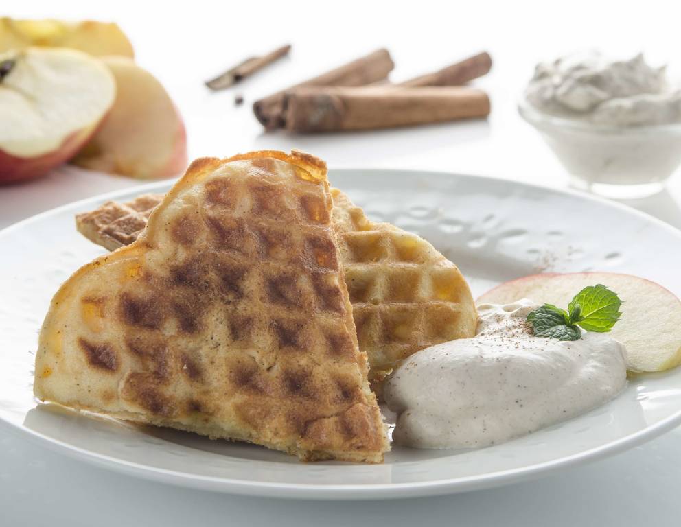 Zu den Apfelwaffeln passt mit Zimt vermischtes Schlagobers.