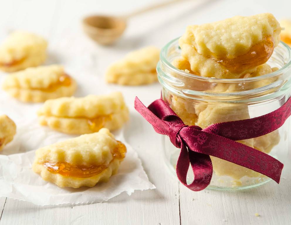 Die Marmelade für Mostkekse kann nach eigenem Geschmack gewählt werden.