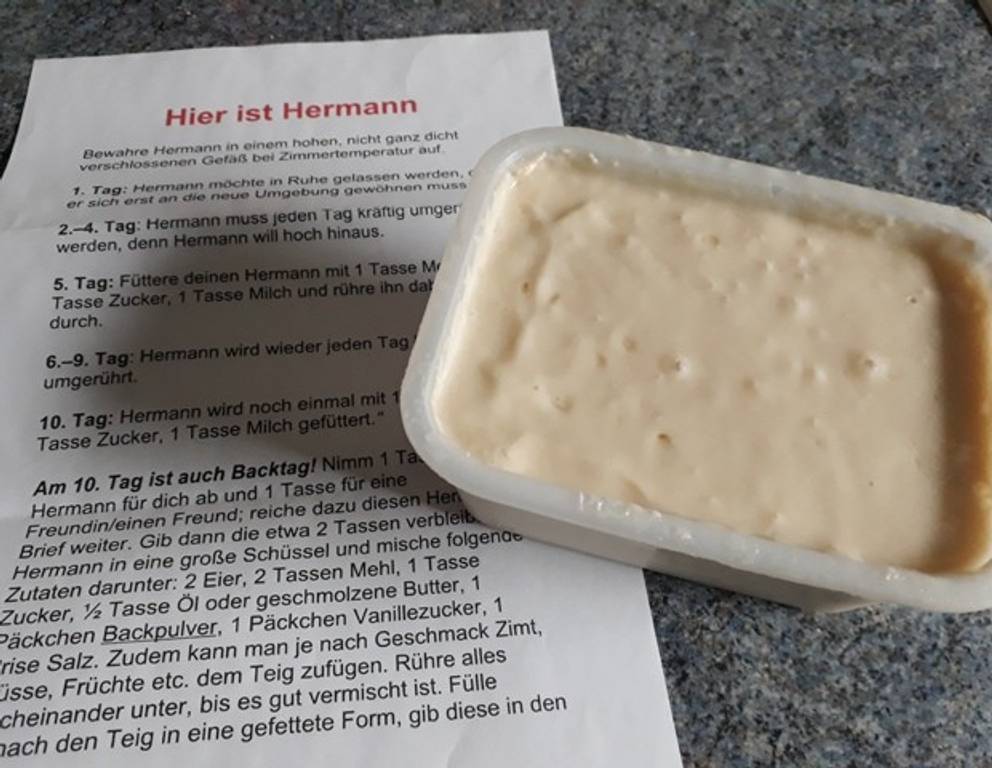 - Damit Hermann gut gelingt und nicht eingeht, sind ein paar Grundregeln zu beachten. Hermann verträgt kein Metall, es dürfen nur hölzerne Löffel benutzt werden. Am besten bei Zimmertemperatur (nicht im Kühlschrank!) aufbewahren, wobei der Teig vor sich hin blubbert.