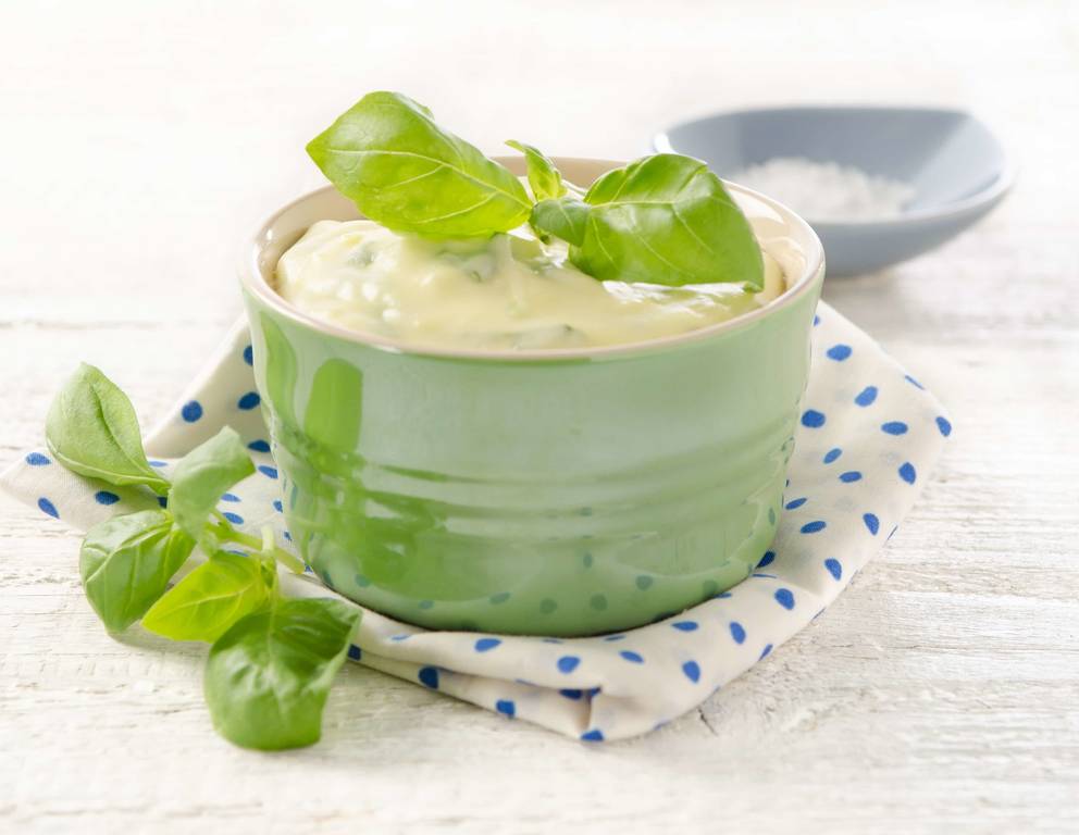- Gut abrühren und das Erdäpfel-Basilikum-Püree mit Salz und Pfeffer abschmecken.