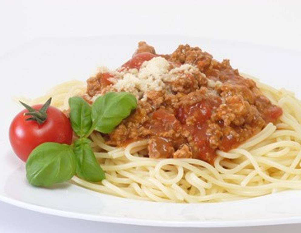 - Die fertig gekochten Spaghetti in ein Sieb gießen. Das Sieb einige Male schütteln, damit die Spaghetti gut abtropfen können und in einem Suppenteller anrichten. Jeweils einen Schöpflöffel Sugo darauf geben und frisch gehobelten oder bereits geriebenen Parmesan darüber streuen.