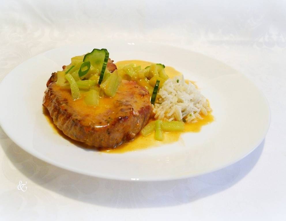 Zu den Steaks mit Gurkengemüse passen auch Erdäpfel. Die Steaks können natürlich auch am Griller zubereitet werden.