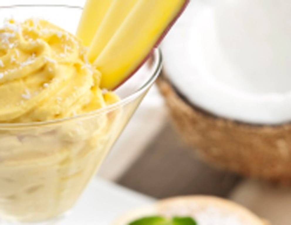 - Alle Zutaten außer dem Schlagobers mit einem Stand-/Stabmixer mixen und anschließend durch ein feines Sieb passieren. Schlagobers hinzufügen und in ein 0,5 L iSi Gerät füllen. Eine iSi Sahnekapsel aufschrauben und kräftig schütteln. Mindestens 30 Minuten kühlen. Für die Garnierung etwa 10 g Kokosraspel in einer trockenen Pfanne unter Rühren goldbraun rösten und anrichten.