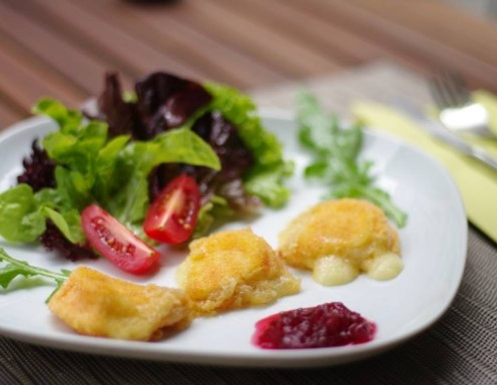 Gegrillter Saint Albray schmeckt besonders gut mit knackigem Salat und Preiselbeeren.