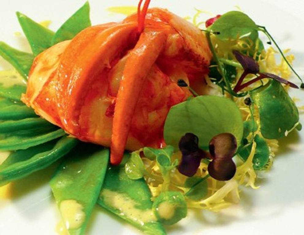 - Die gekochten Hummer halbieren. Scheren sowie Schwanz auslösen und das Hummerfleisch in einem leichten Fond mit etwas Butter wärmen. Achtung: Der Hummer darf nicht zu heiß werden, da sein Fleisch sonst zu zäh wird!