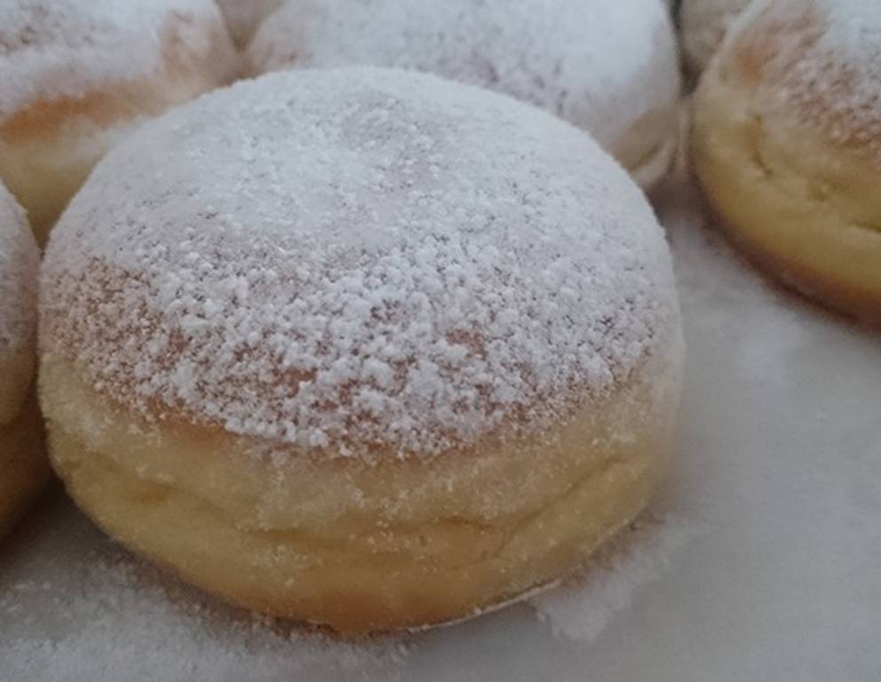Wenn Sie möchten können Sie einen Teil der Krapfen von einer Seite mit der Zuckerglasur einstreichen und mit bunten Streuseln überstreuen.
