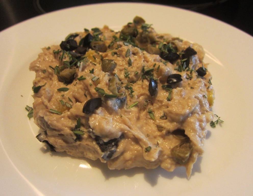 - In einer Küchenmaschine aus dem Thunfisch, den Sardellenfilets, den Kapern eine feine Paste verquirlen. Etwas später die Oliven und die Küchenkräuter dazugeben, diese nur kurz verquirlen, sie sollten nur gehackt aber nicht völlig zerkleinert werden. Die weiche Butter in einer Backschüssel cremig rühren. Die Thunfischpaste dazugeben und ausführlich mischen. Mit Balsamico, Salz, Olivenöl und frisch gemahlenem Pfeffer kräftig abschmecken.