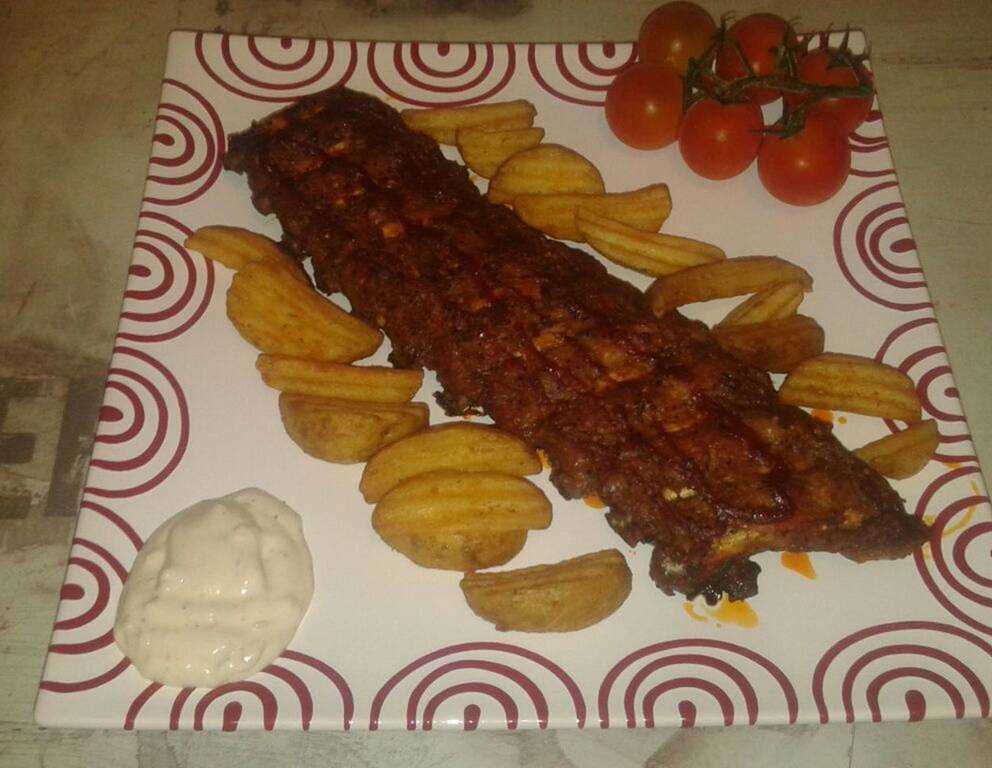 - Spareribs mit feuriger Paradeisersauce und Erdäpfeln servieren.