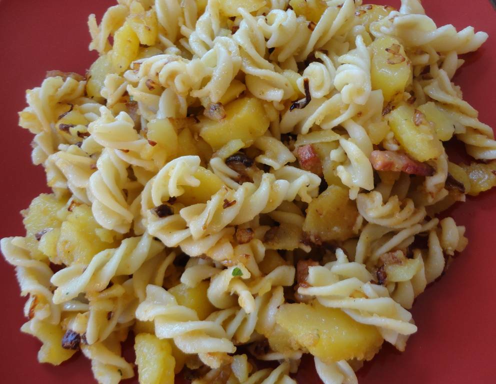 Grenadiermarsch mit Erbsen ist ein wunderbares Restlessen. Es können zum Beispiel Kartoffeln oder Nudeln vom Vortag mit Fleisch- oder Wurstresten verwendet werden.
