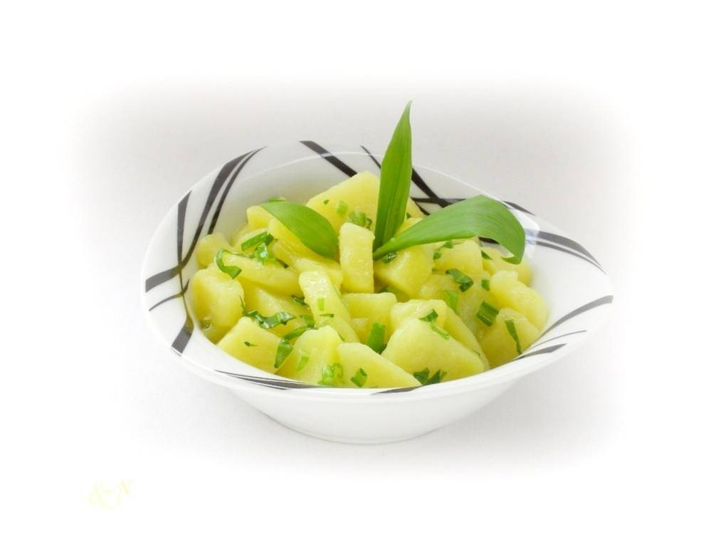 Kartoffelsalat mit Bärlauch passt gut zu gebratenem Fisch.