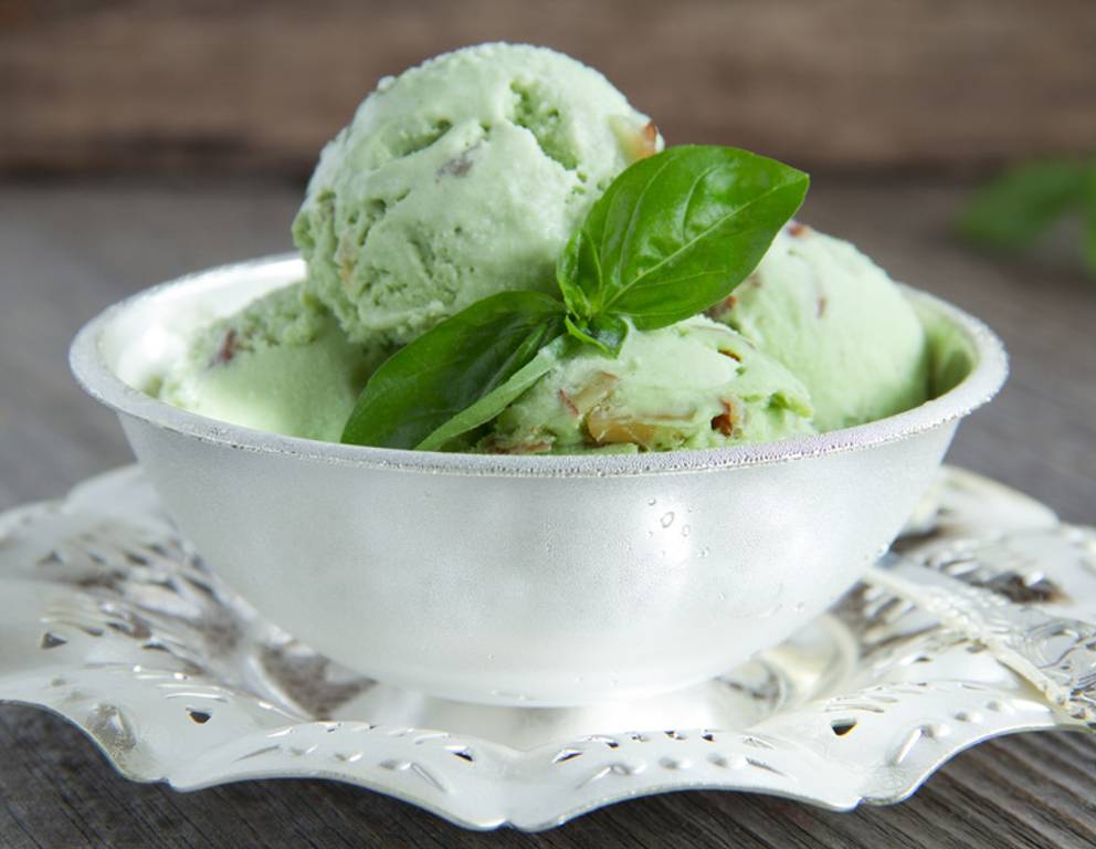 - Das Basilikumeis mit Nüssen für mehrere Stunden einfrieren.