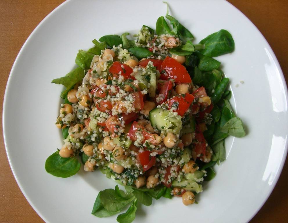 Couscous ist eine Art Weizengrieß, der aus Hartweizen hergestellt wird. Er eignet sich sehr gut für den Marokkanischen Blattsalat, da er den Wohlgeschmack des Dressings ausgezeichnet aufnimmt.