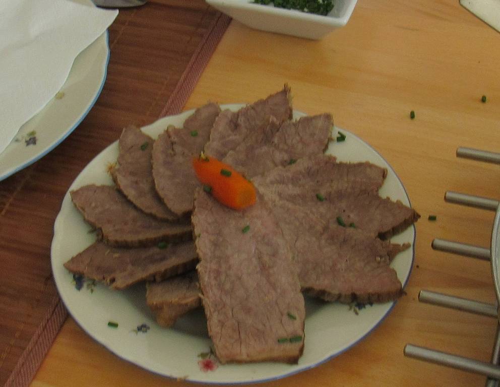 Wenn etwas vom Rindfleisch übrig bleibt, können Sie daraus einen tollen Blattsalat mit Zwiebeln und Gewürzgurken zubereiten.